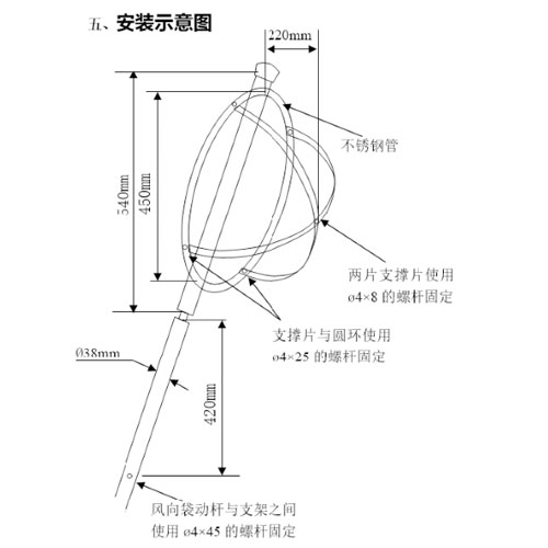 · 不銹鋼風桿:高度2000mm,直徑38mm。